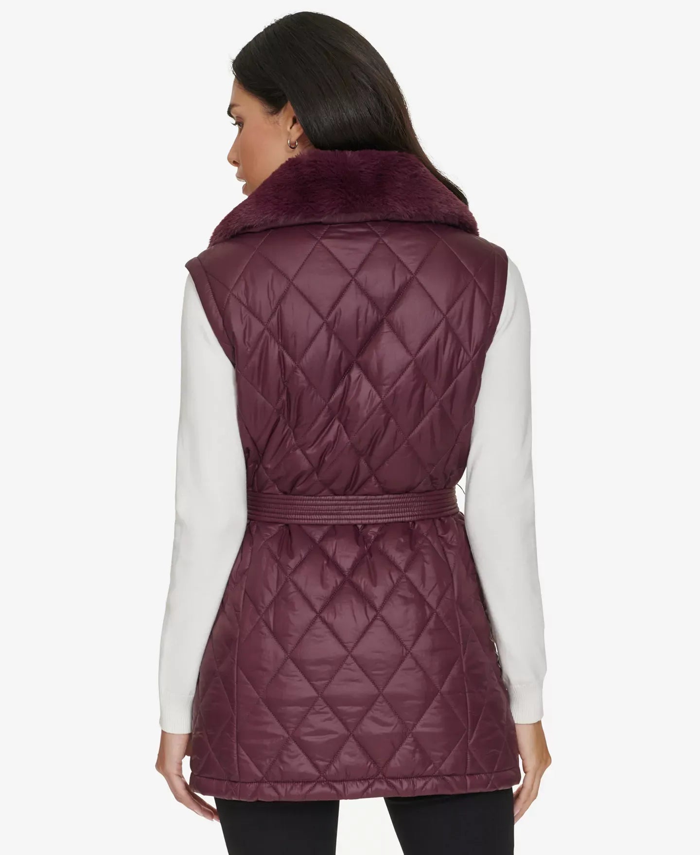 Women's Quilted Faux-Fur Collar Vest Jacket