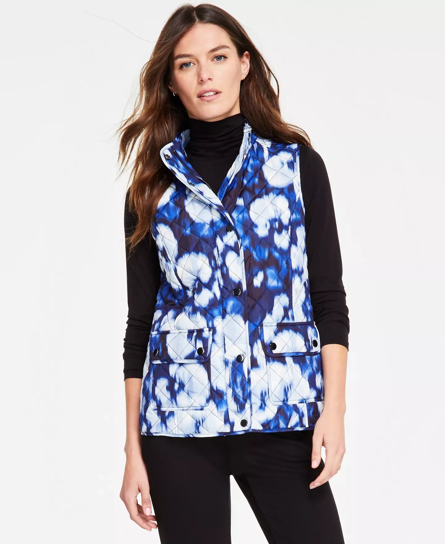 Women's Printed Quilted Patch-Pocket Vest Jacket