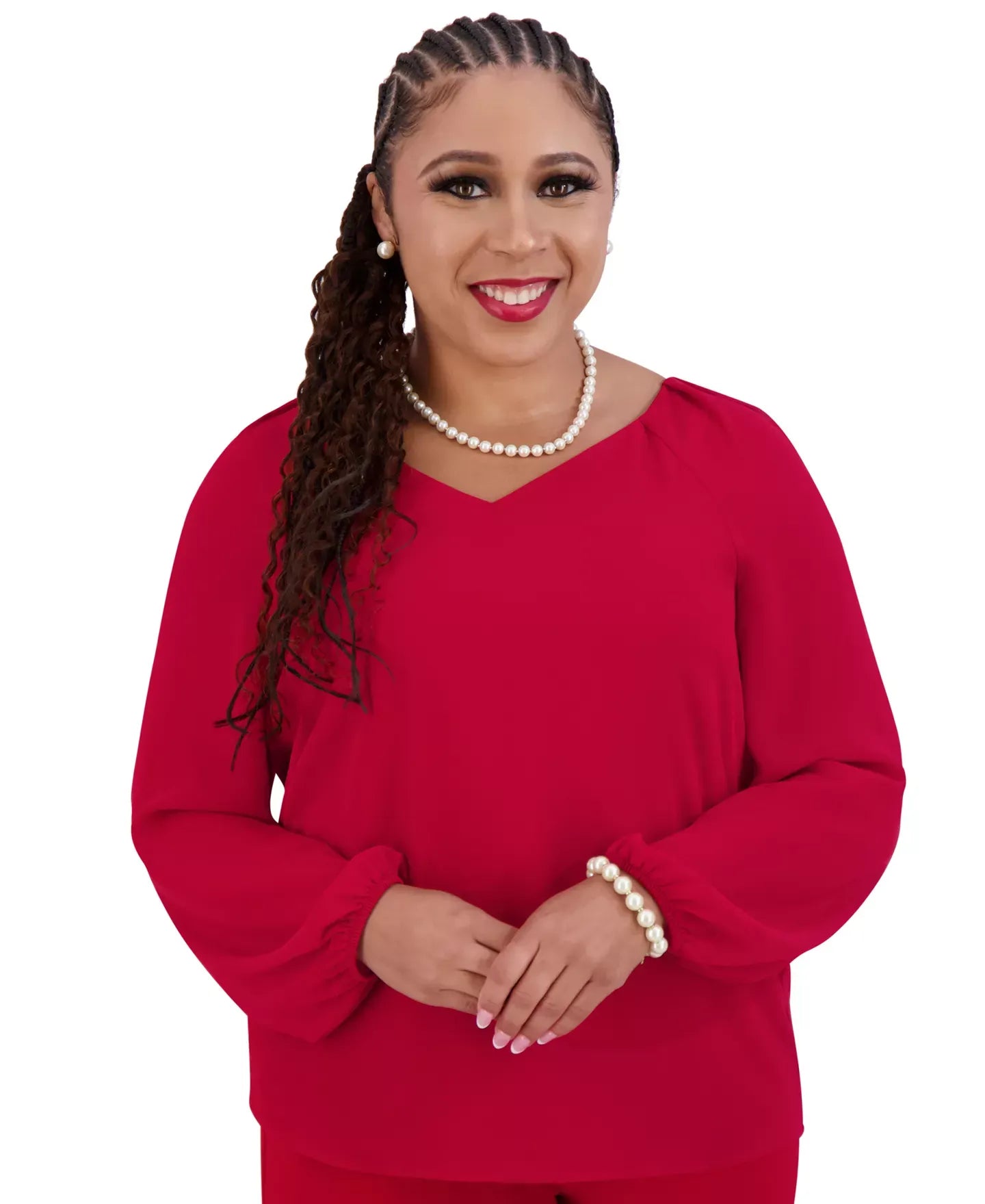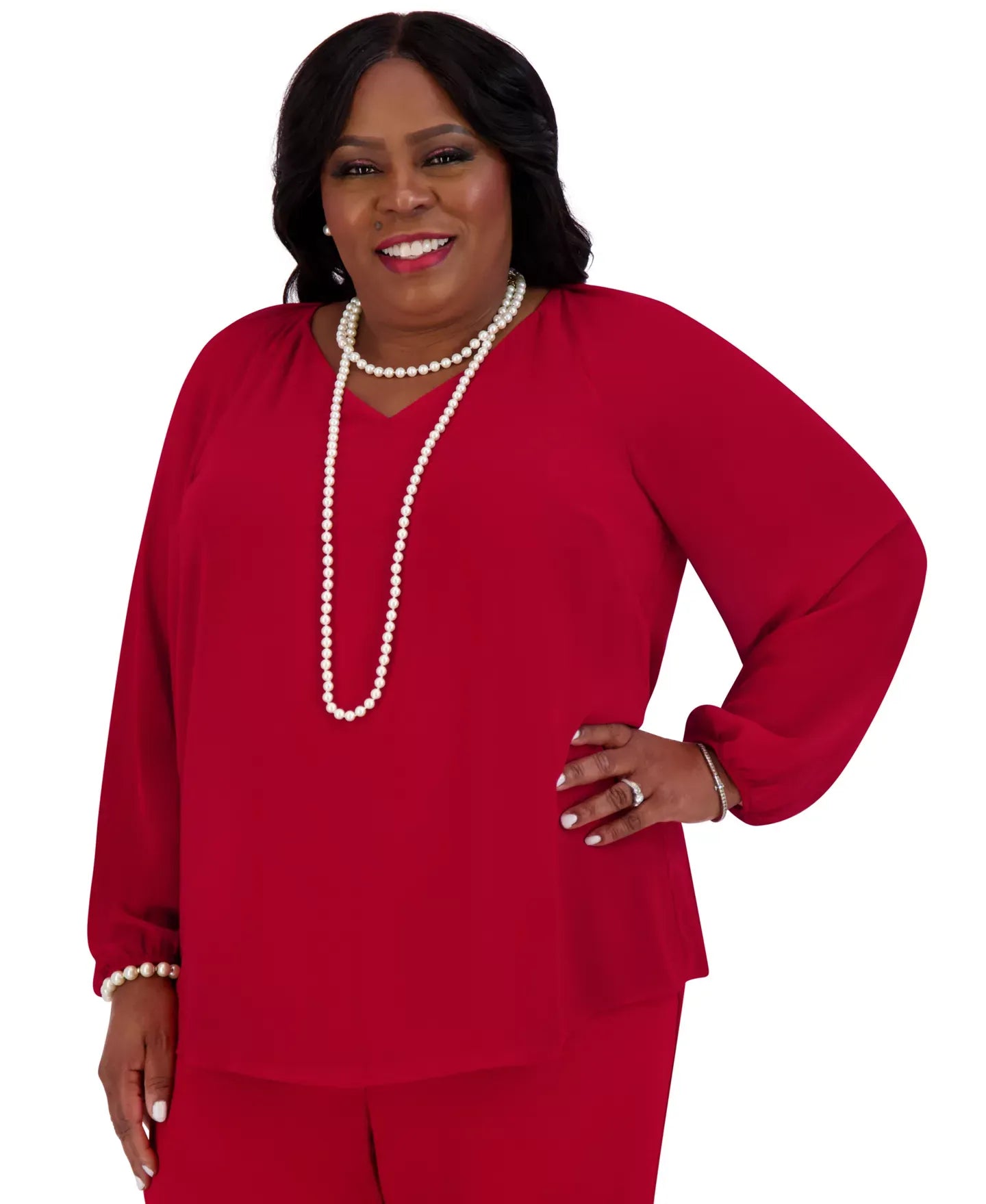 Women's V-Neck Raglan-Long-Sleeve Blouse Regular & Plus Top