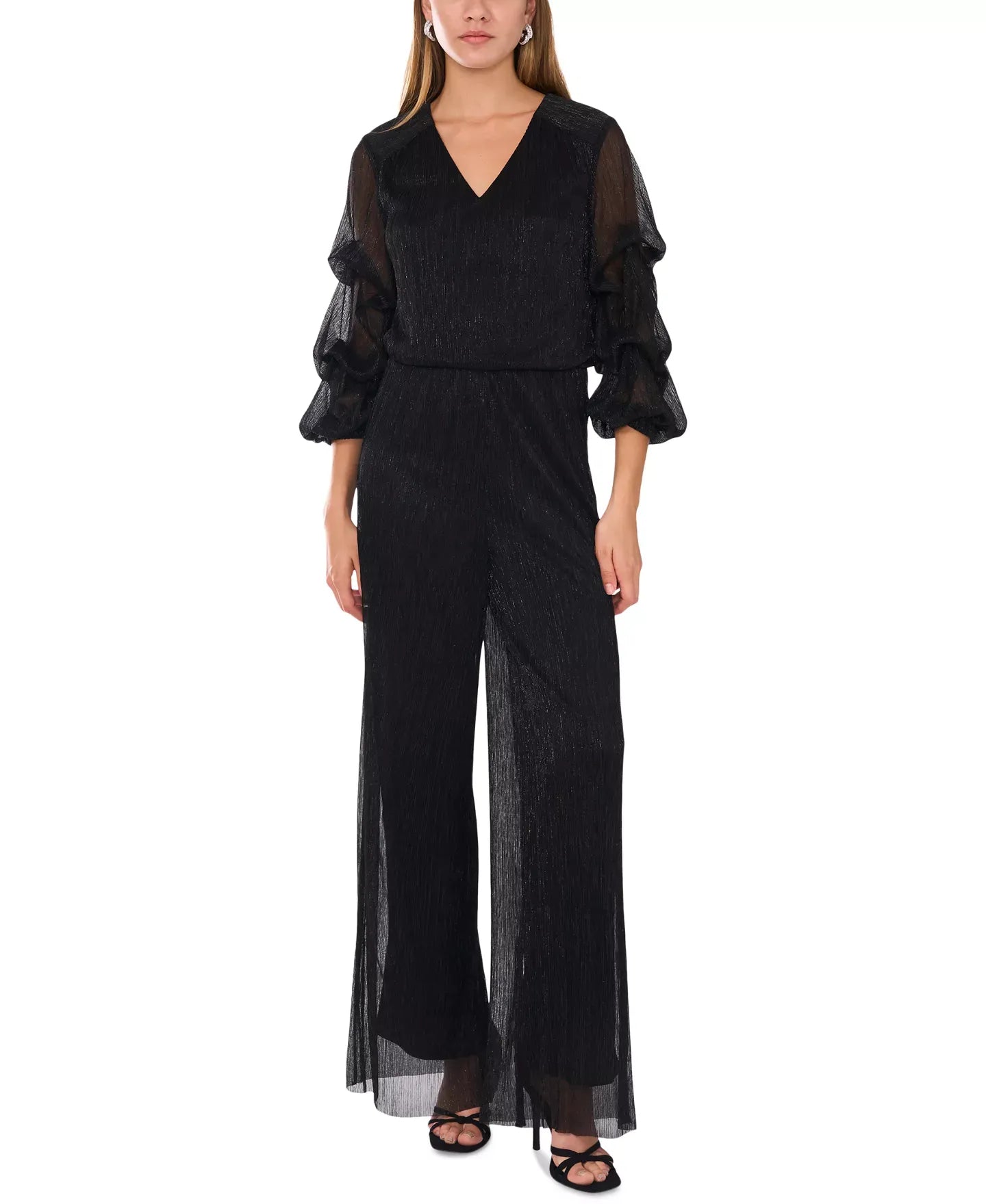 Women's Metallic V-Neck Bubble-Sleeve Jumpsuit Pants
